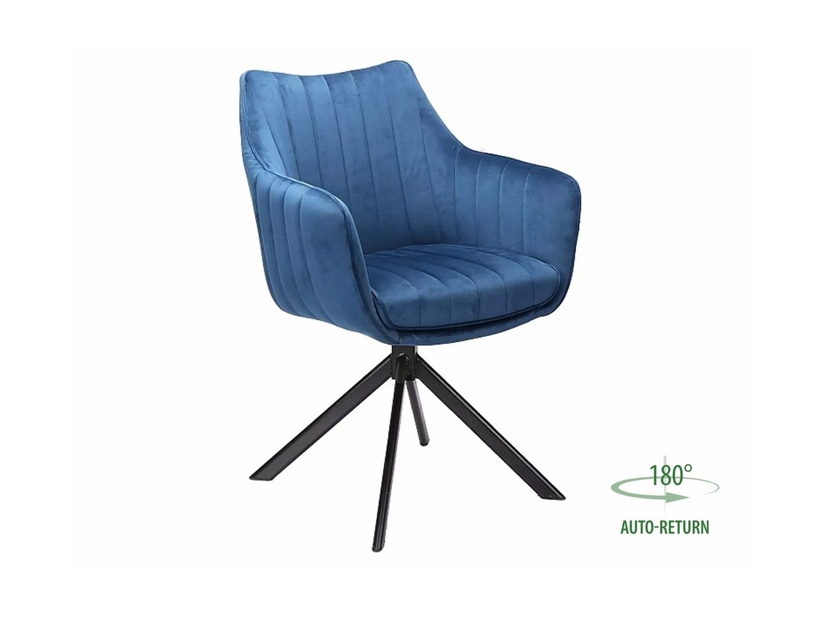 Krzesło, tkanina aksamit: Bluvel 86 - granatowy, stelaż: metal, kolor: czarny mat. Siedzisko obracane w zakresie 180 stopni, z funkcją powrotu do pozycji wyjściowej.